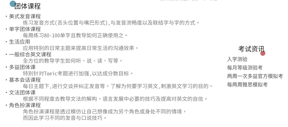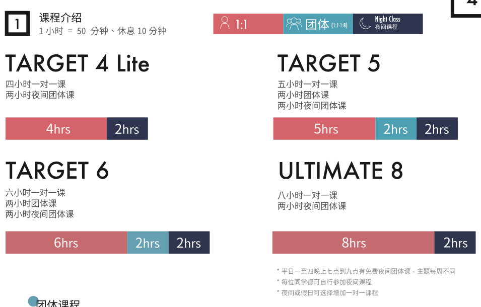 - 弹性课程,一对一课程按照学生需求量身规划。
