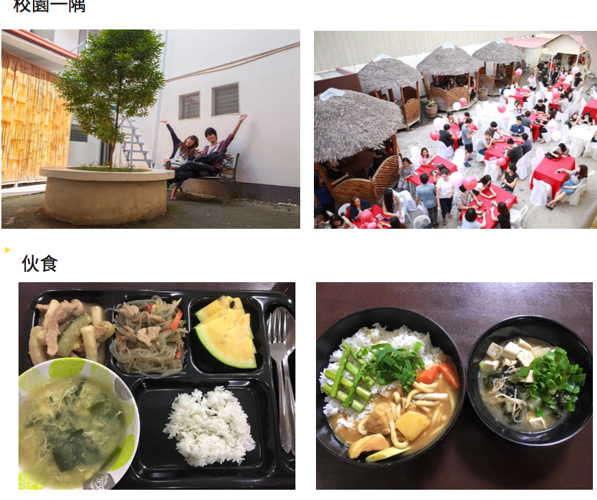 - 校园设施:用餐区,自习室,柜台,亭子,医务室,免费Wi-Fi, 热水器
