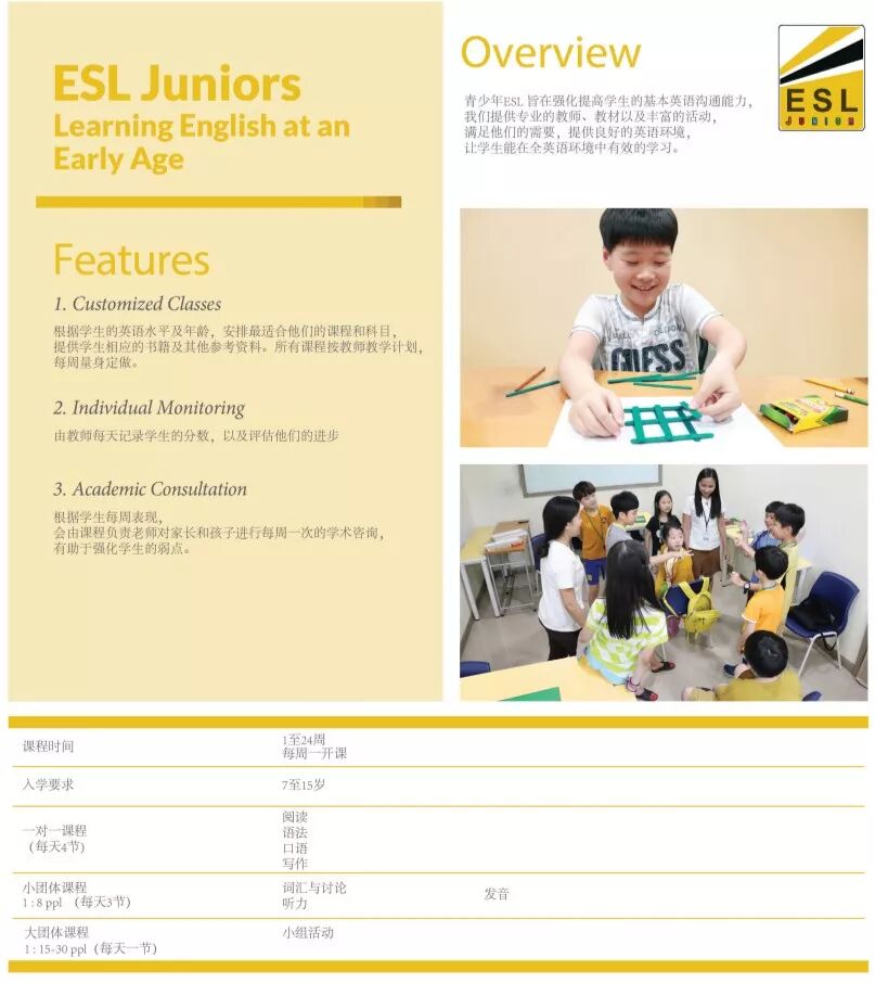 该课程青少年ESL主旨在发展学生的基本英语沟通能力,提供有实力的教师、教材和活动,满足他们的需求,提供良好的英语环境,让学生能在全英语环境中有效的学习。