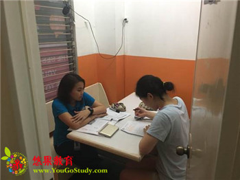 一对一教室,还有在上课的青少年孩子哦,教室算是比较大的,每间一对一教室都一个小小的书架。摆放着各种教学用书和参考书。