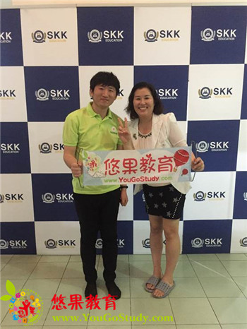 参观结束,女校长说要跟悠果LEO 大人合个影,表达和悠果家良好的合作。