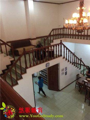有二十年教学经验的SKK 学院建校于1995年,二十多年来一直专注于,儿童,青少年,亲子教育教学,专业为青少儿提供国际化的圈英语夏令营。学校位于宿务市中心区。这个学校也是一栋单独的楼房,从楼梯上去到三楼看大厅是这样滴。